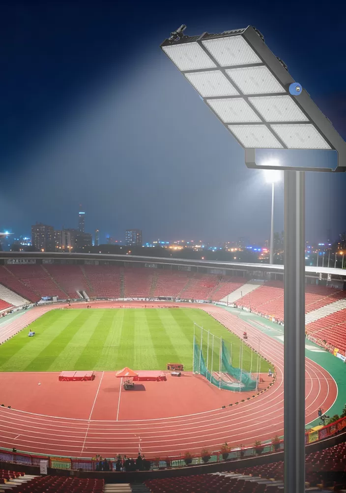Ang mga pantulong na light poste sa magkabilang panig at apat na mataas na poste sa mga sulok ay ang pangunahing tampok ng mga tipikal na malalaking istadyum. Ang mga auxiliary light poste sa magkabilang panig ay 20-30 metro ang taas at idinagdag sa pag-iilaw ng tumatakbo na track at mga gilid ng stands .. Ang mga light poste ng sulok ay 35-50 metro ang taas at may mataas na lakas na LED na mga ilaw ng baha upang masakop ang core ng panloob na patlang.